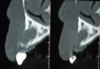 通常これほど骨が薄い場合は上の症例の様な大きな骨の移植が必要となりますが、シュミレーションソフトを使い審査したところギリギリでインプラント埋入と同時に骨の移植を行えると判断。