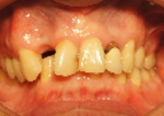 右側の上前歯2本は元から入っていたメタルセラミッククラウン。