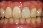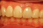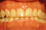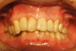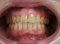 写真左側の上前歯3本がオールセラミックブリッジ。(当院で治療)